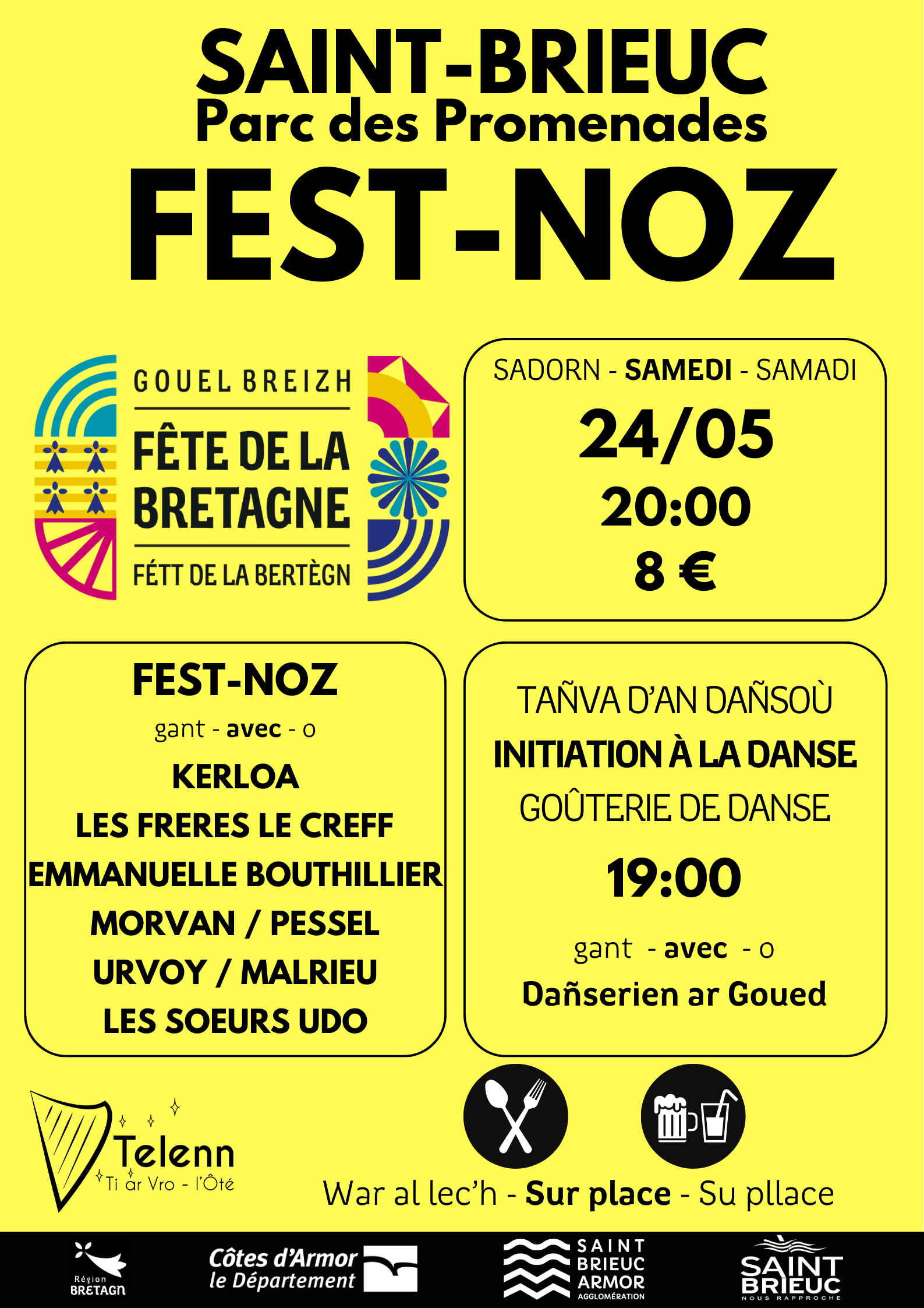 Il aura lieu au Parc des Promenades de Saint-Brieuc le samedi 24 mai à 20h et sera précédé d'une initiation à la danse à 19h avec le cercle Dañserien ar Goued.
