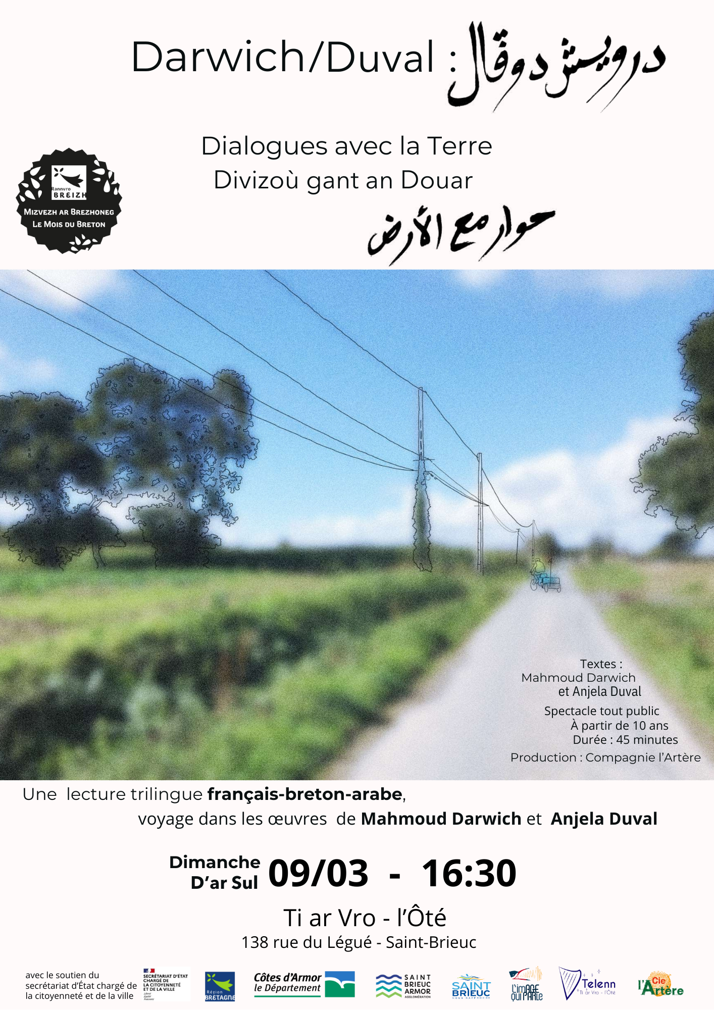 Lecture trilingue français-breton-arabe, voyage dans les œuvres de Mahmoud Darwich et Anjela Duval.